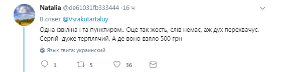 «Пусть едет на Донецк. И там Райкина смотрит», «В конце она все о себе сказала: «Я дончанка-дура», «Вот так и живем: «Какая разница», «И вот такая «украинка» позорит нас на всю страну. Хамло»,» Одна извилина и та пунктиром. Вот это жесть, слов нет, дух перехватывает. Сергей очень терпелив. А где оно взяло 500 грн?» «Я — дончанка, дура!» Как много в этой фразе», — отмечают они.